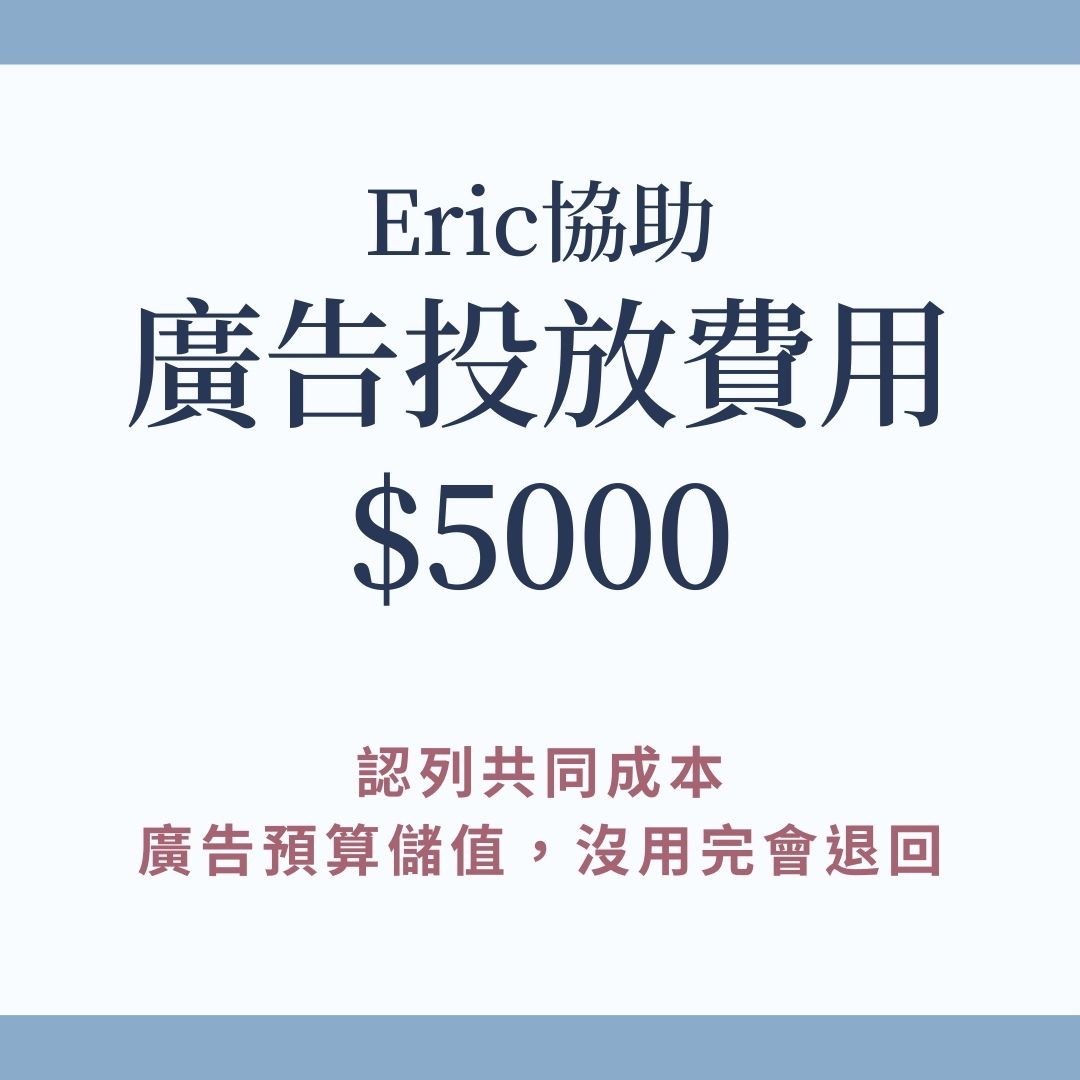 Eric協助-廣告投放費用$5000(認列共同成本)NT$5,000 廣告預算儲值,沒用完會退回,就不需要另外綁定FB帳號&信用卡,直接由Eric這邊處理投放 Eric協助-廣告投放費用$5000(認列共同成本) 數量 加入購物車 描述 廣告預算儲值,沒用完會退回,就不需要另外綁定FB帳號&信用卡,直接由Eric這邊處理投放